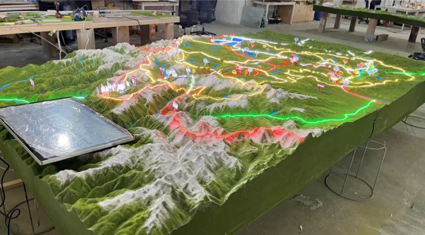 数据转化与粗胚雕刻:依据测绘等高线图纸,利用数控雕刻机对泡沫基座进行分层切削,初步构建山脉的起伏轮廓与山谷走向。对于手工难以触及的深谷与陡坡,采用分块雕刻后拼接的方式,确保地形衔接自然。